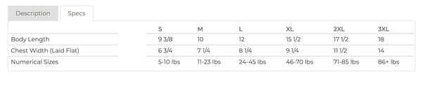 SMALL 5-10lb, MEDIUM 11-23lb, LARGE 24-45lb, XL 46-70lb, XXL 71-85lb, XXXL 86+lb